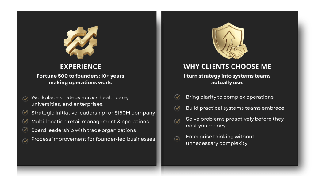 I help small and mid-sized businesses build operational systems that make day-to-day work easier and growth sustainable.